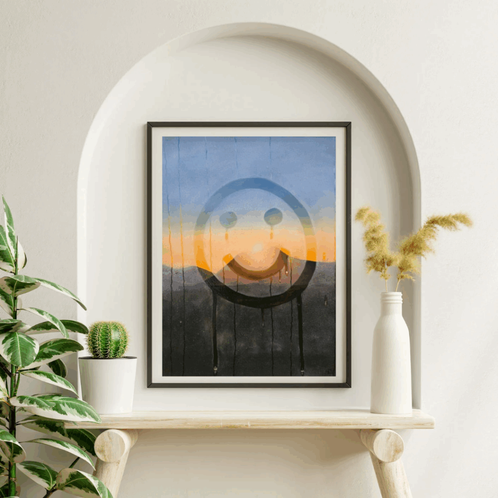 Reverting to childhood I started drawing with my finger on the condensation covered window. An idea sparked! So I ran with it and created ‘Happy days’. The first in the series.